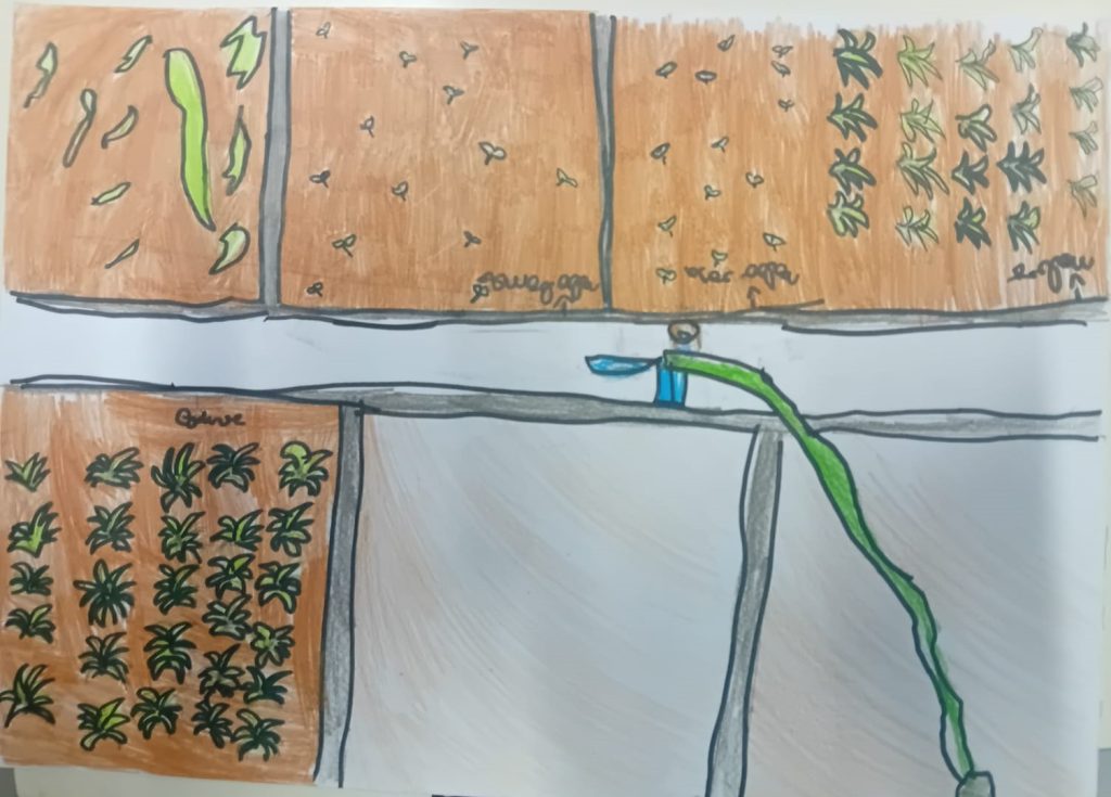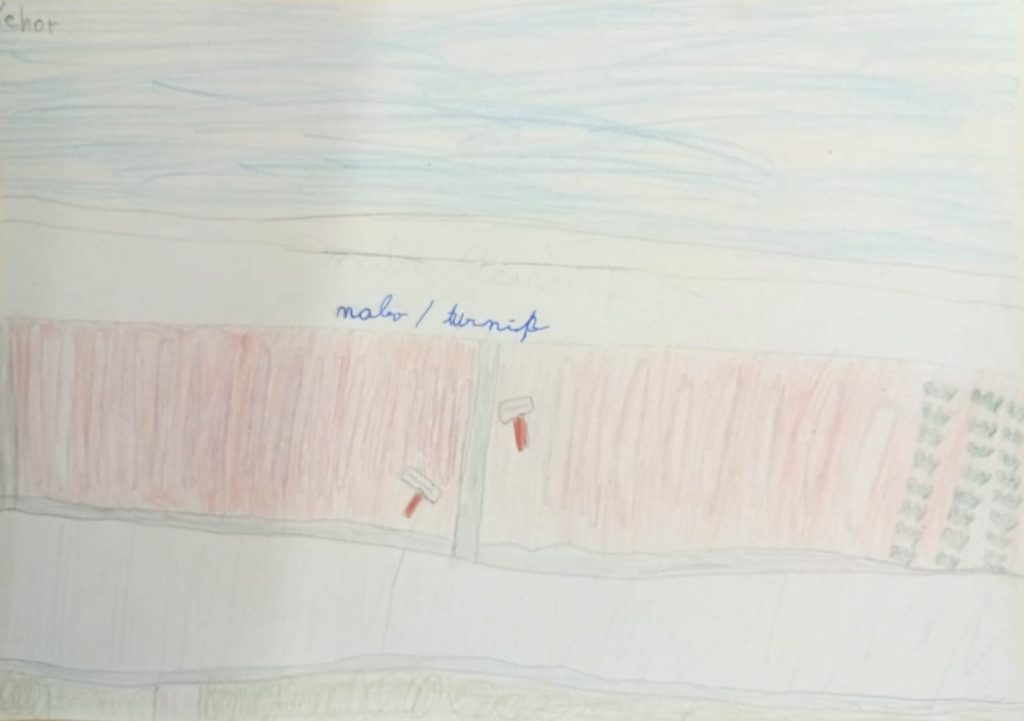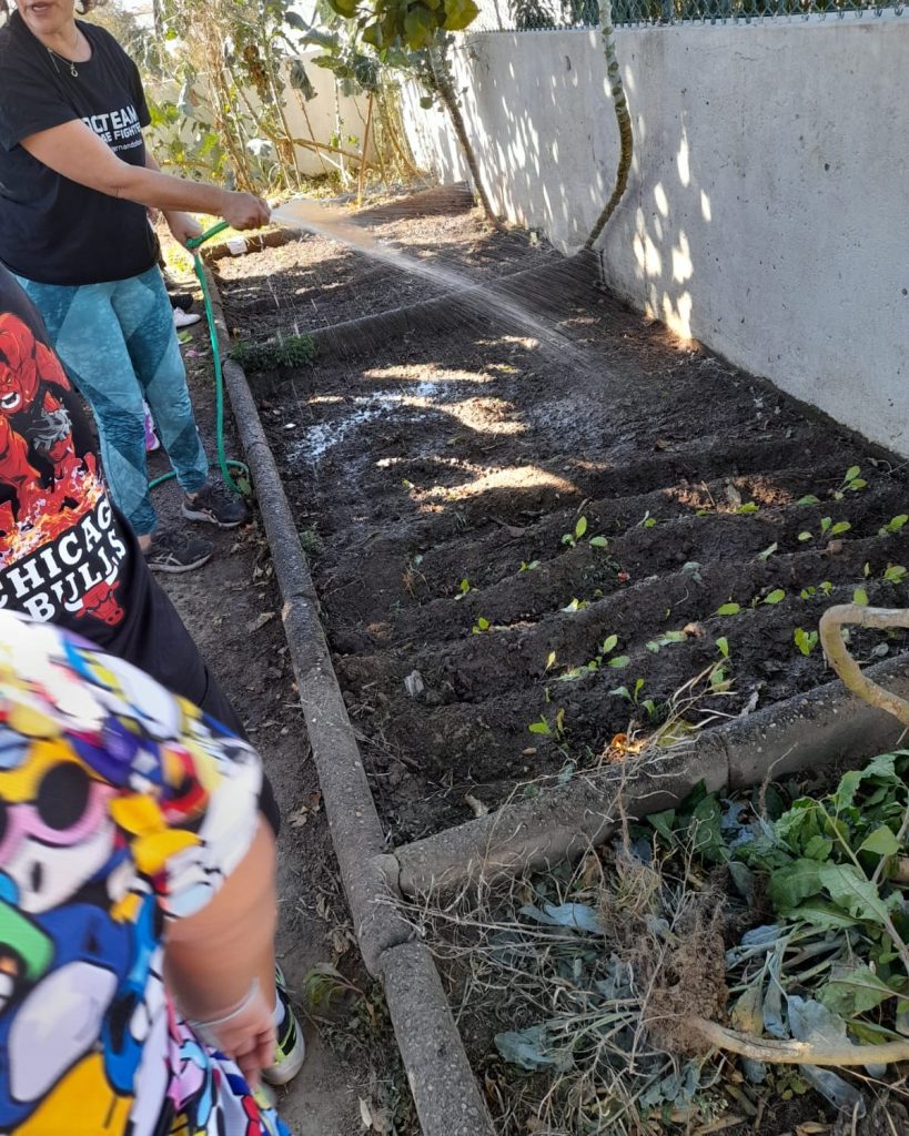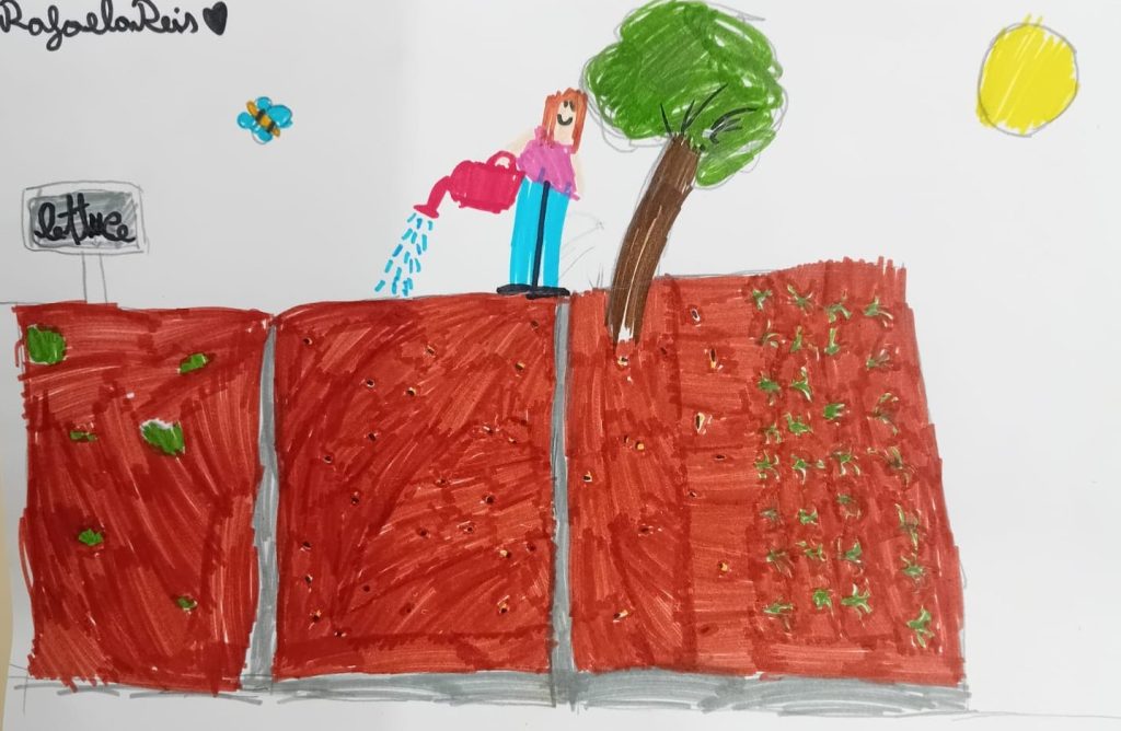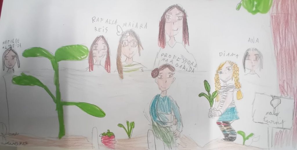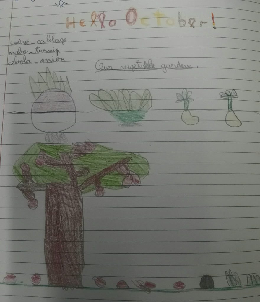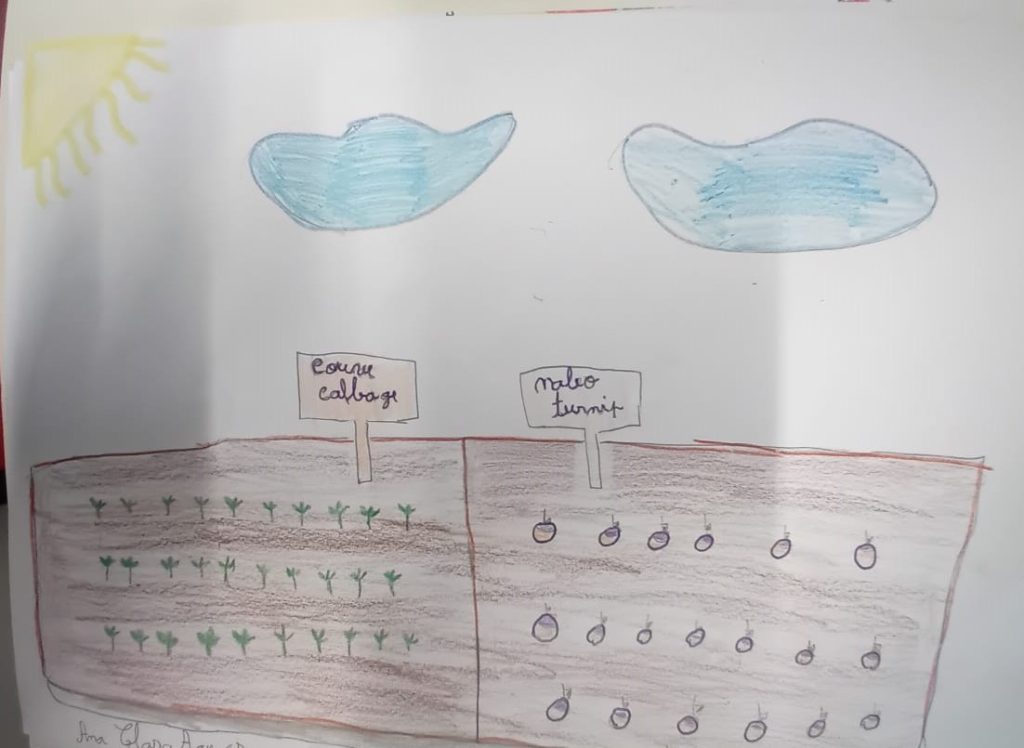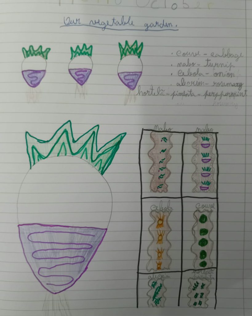 Nas últimas semanas, procedeu-se à limpeza e preparação do espaço e fez-se a respetiva plantação e sementeira de nabos e couves (pencas). Todos os alunos, inclusive do pré-escolar, observaram e participaram nesta atividade com muito entusiasmo e puderam compreender todo o processo inicial. Posteriormente foi trabalhado algum vocabulário em português e inglês no terceiro e quarto ano e ilustrado o que mais chamou à atenção dos alunos. Uma semana depois, os alunos já puderam verificar a germinação das sementes e os nabos e couves bem “pegadinhos” à terra.