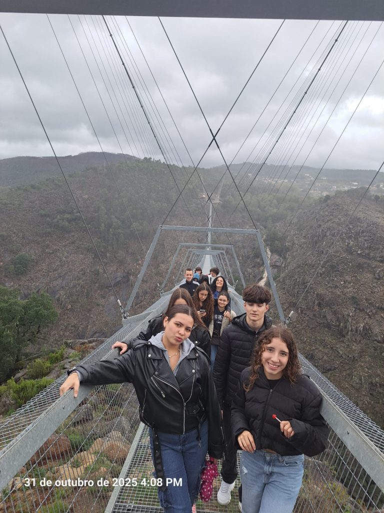 Na última semana de outubro, a Escola Básica Júlio Dinis acolheu um grupo de sete adolescentes da Croácia. Os alunos, 4 rapazes e 3 raparigas, ficaram alojados em famílias de acolhimento e, diariamente, vieram para a escola, integrando-se nas turmas B e D do 9.º ano e participando em aulas de várias disciplinas conjuntamente com os seus pares portugueses. O seu plano incluiu muito mais do que aulas: atividades desportivas, culturais e artísticas, uso de tecnologias digitais, uma sessão de cinema, caminhadas, convívio, visita ao Museu da Filigrana, a travessia da ponte suspensa pedonal de Arouca e um dia passado a explorar o centro histórico do Porto. Foi uma experiência que a todos – visitantes e anfitriões – marcou profundamente e desenvolveu competências culturais e linguísticas.