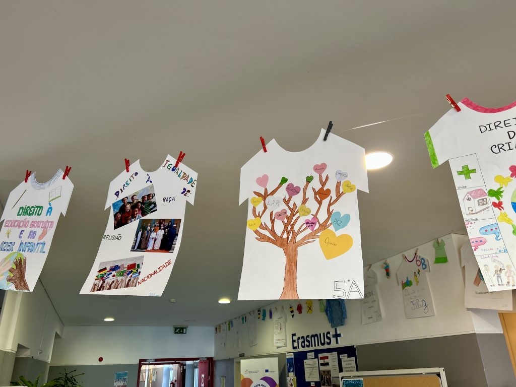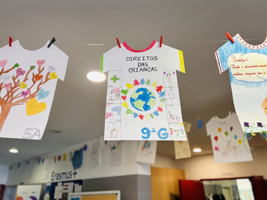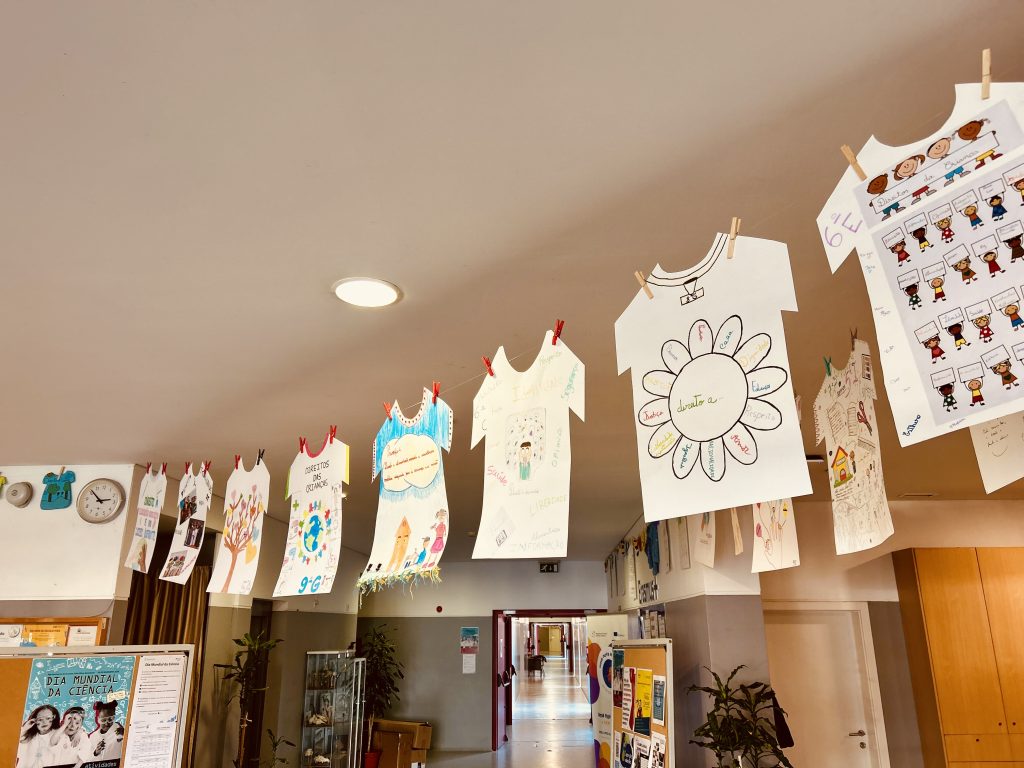 Mais do que um momento decorativo, este estendal foi uma forma de sensibilizar a nossa comunidade educativa para a importância de conhecer, respeitar e defender os direitos de todas as crianças e jovens.