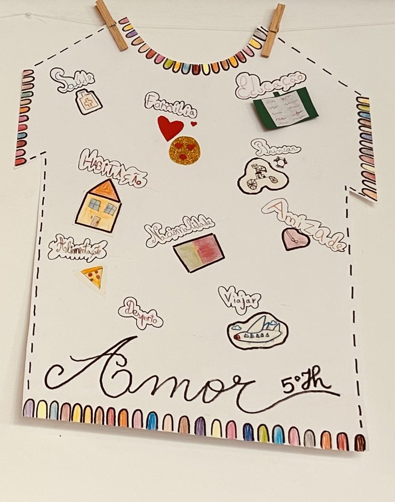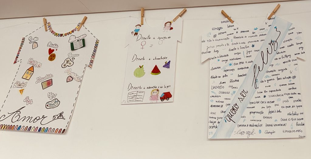 Cada turma decorou t-shirts alusivas ao tema, de forma criativa e original, representando diferentes direitos fundamentais: o direito à educação, à proteção, ao amor, ao brincar, à saúde, entre muitos outros. As t-shirts foram posteriormente penduradas na entrada da escola, formando um lindo estendal que chamou a atenção de todos os que por ali passaram.